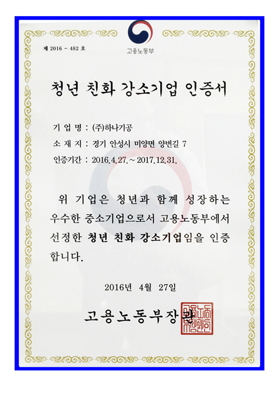 이전글 : 2018 청년친화기업 (임금BEST분야) 선정패